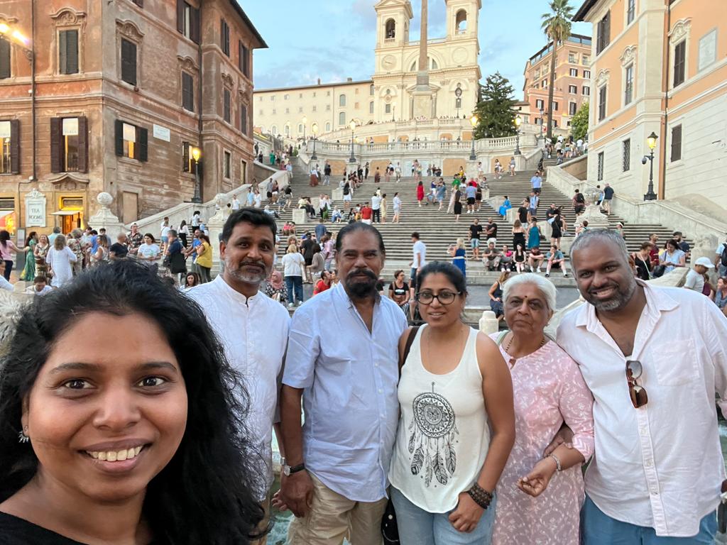 Woke up ate peaches and figs, that we had plucked from the farmhouse near Siena. We then packed and vacated by 9:45am. Vinod and me went to a convent to drop off the luggage, Fr. John Peter arranged a place to drop it off. Then me and Vinod went walking to a Tabbachi place to buy bus tickets. Nam, dad and mom went to a café near the airbnb for breakfast. Then we met them at the Vatican shops and we did our shopping... bought rosaries, vestments, cute angels and other stuff.
